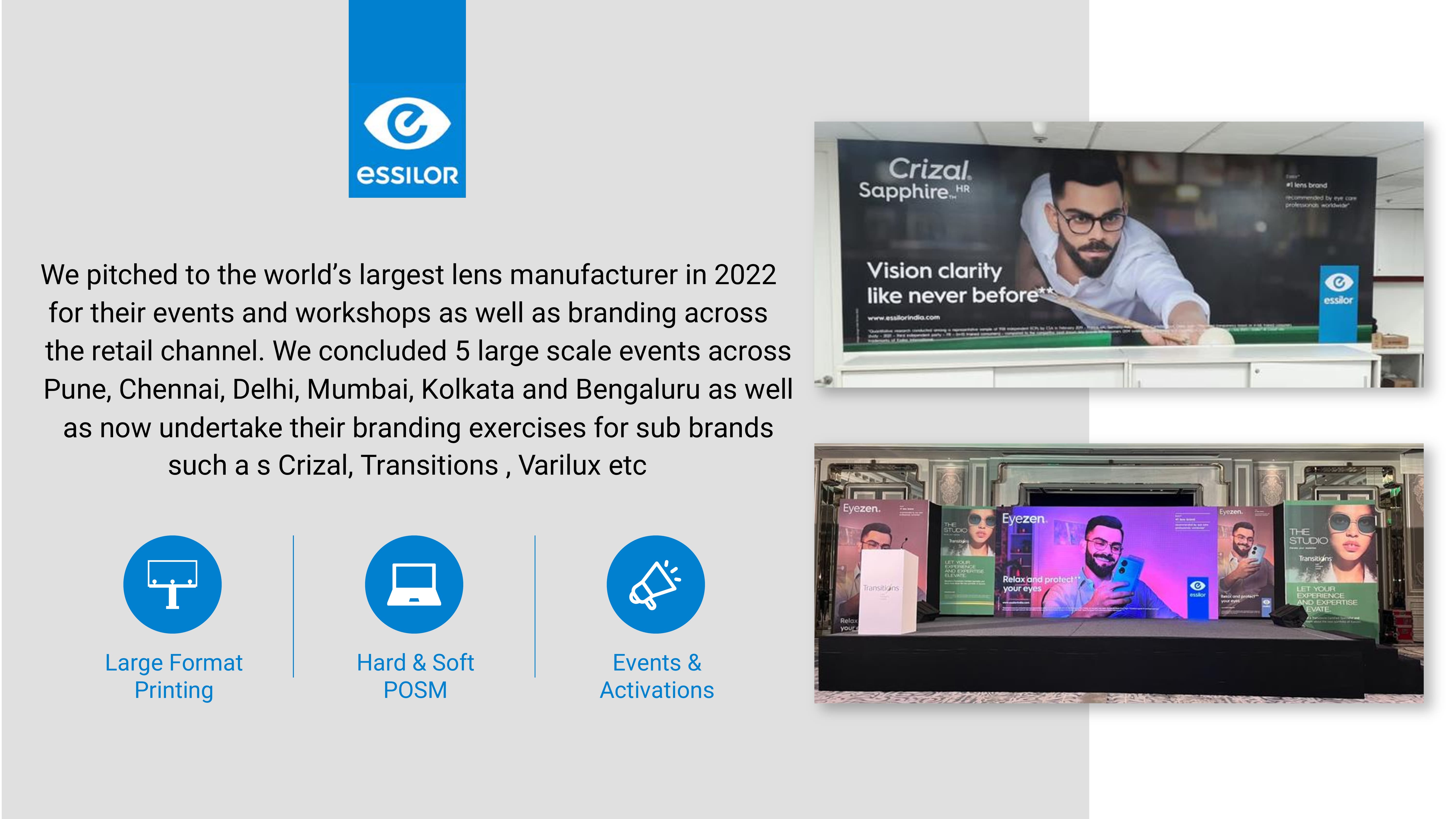 Today, we’re a 65+ team across client servicing, project management, design, and in-house production, with offices in Delhi, Mumbai, and Bengaluru, and satellite teams in Kolkata, Pune, and Chennai delivering end-to-end execution and nationwide coverage.